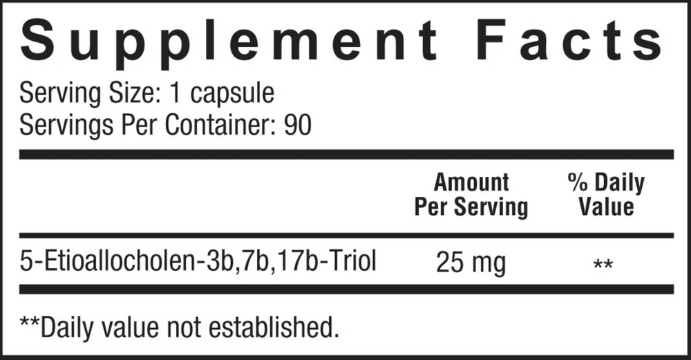 5-Etioallocholen-3b,7b,17b-triol: More commonly known as androstenetriol, 5-etioallocholen-3 beta-7 beta-17beta-triol is a metabolite of the ubiquitous endogenous steroid, dehydroepiandrosterone (DHEA). DHEA is one of the most abundant endogenous steroids in the human body, playing a critical role in a number of bodily functions. These functions include, though are not limited to, serving as an intermediate (a middle piece) in the synthesis of sex steroids such as testosterone and estrogen, up-regulating (increasing) immune response and countering the immunosuppressive actions of corticosteroids, and maybe the most impressive, directly and strongly suppressing the release of cortisol itself!