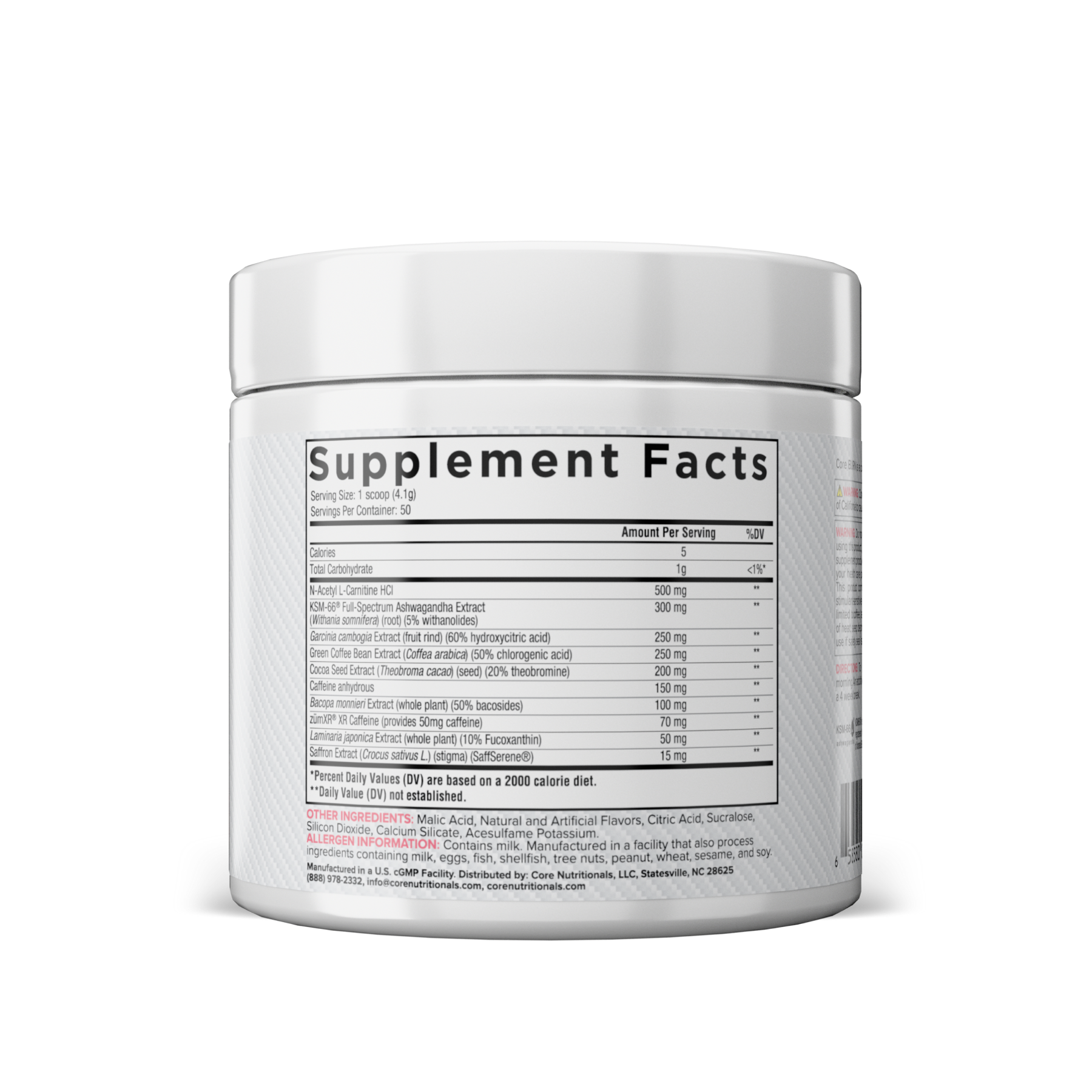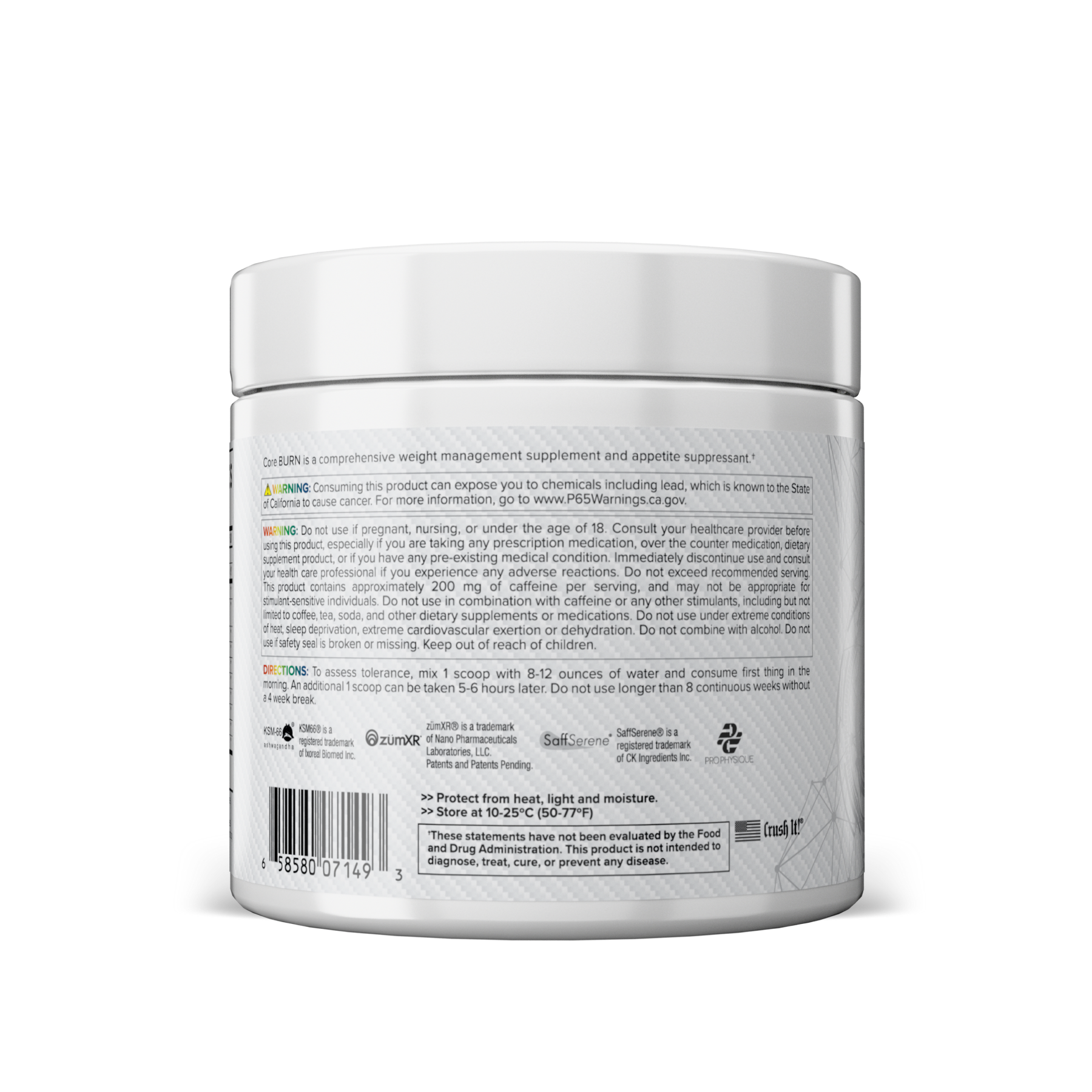 BURN is the next innovation in thermogenics. A modern weight loss solution using trademarked and patented ingredients, BURN addresses every major metabolic pathway of adipose creation and deposition. Whereas many thermogenics focus exclusively on stimulation, BURN contains ingredients with specific, high-quality evidence demonstrating their efficacy. SaffSerene™, for example, has been demonstrated to significantly reduce subjective feelings of hunger – one of the only dietary ingredients on the market that the FDA allows to make such a claim. KSM-66®, a patented extract of Ashwagandha, has been shown to significantly reduce corstiol – the body’s key stress hormone – in clinical trials. Together with the other premium ingredients in BURN, these two ingredients create an unparalleled weight management product.