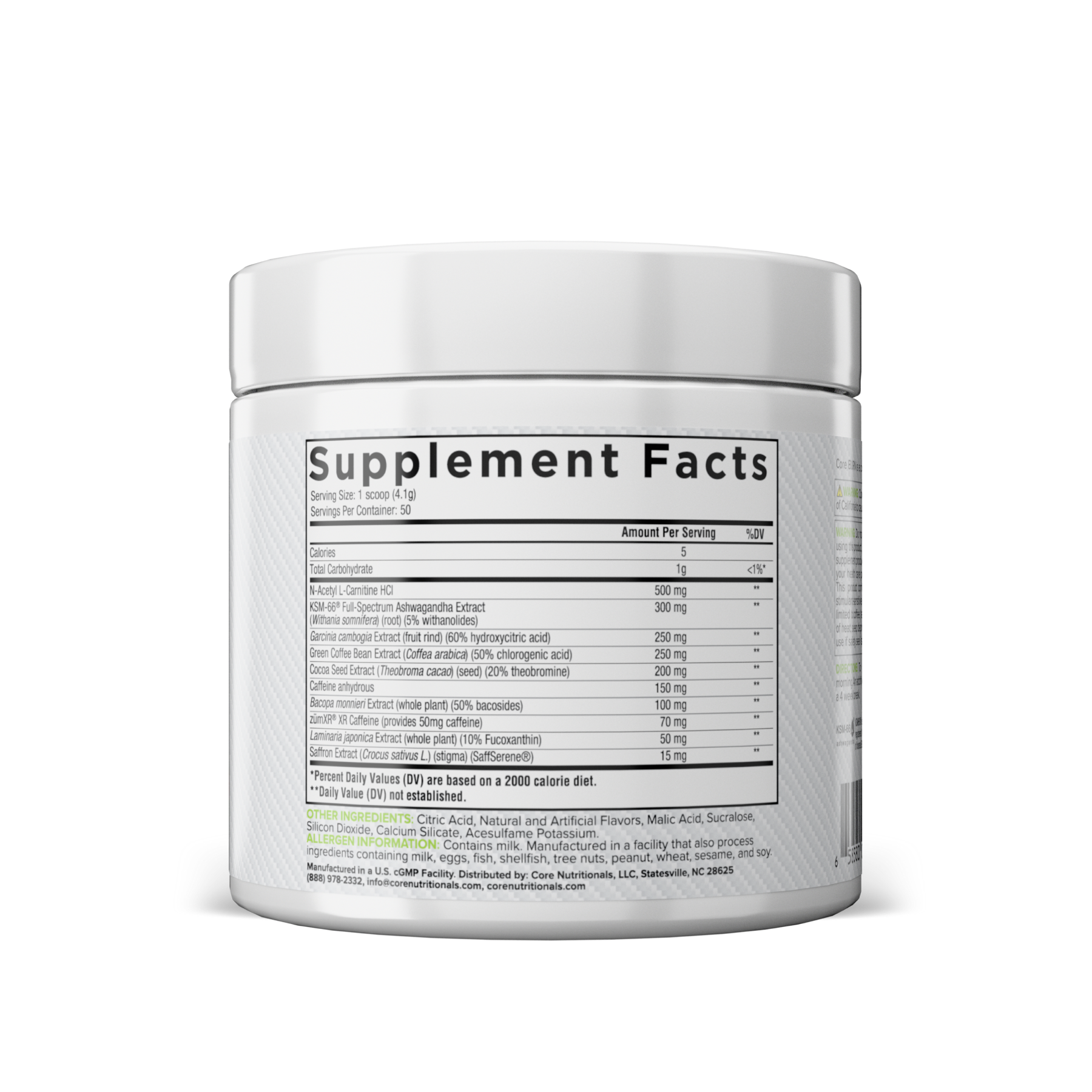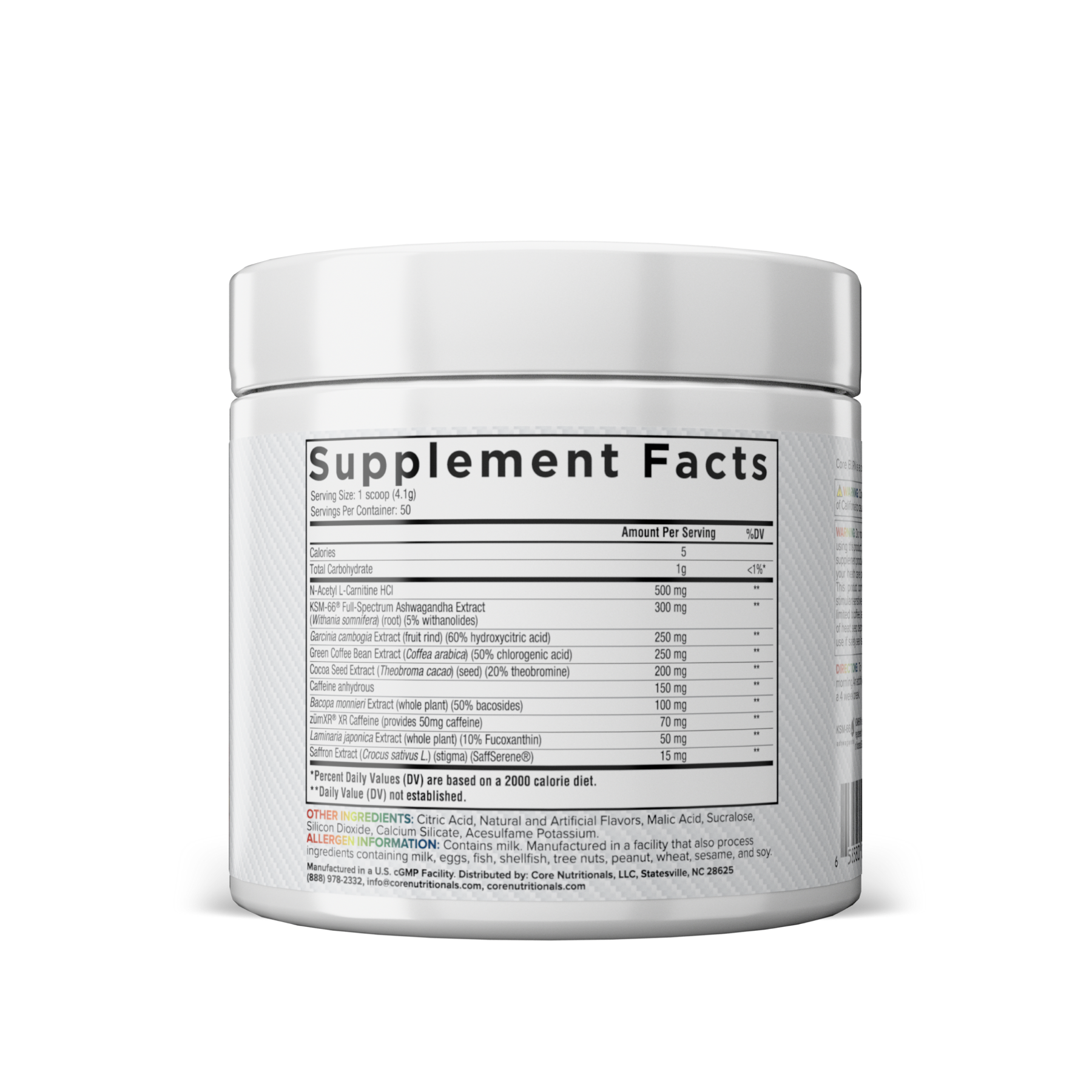 Beyond cognition and memory encoding, BM has also been demonstrated to function as a potent adaptogen and relaxant – which in the Core BURN Ultra formula may help to smooth the effect curve of the product’s stimulants, reducing jitteriness or, “crash.”