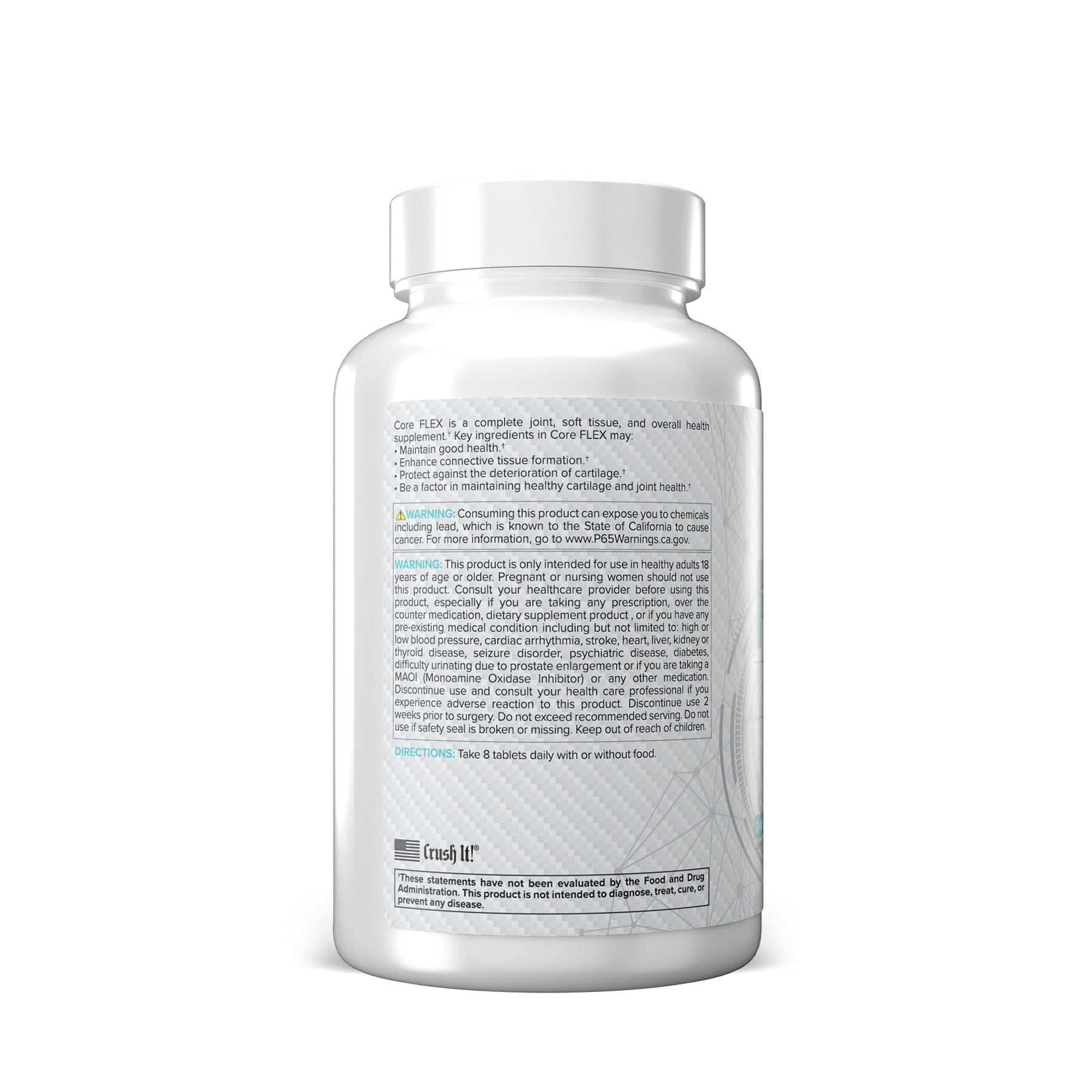 Core FLEX is an ultra-potent combination of 11 clinical ingredients, crafted to ensure the maintenance of strong and healthy tendons and ligaments. Best of all, its all-in-one blend combines the efficacy of single ingredient products, with the synergy of an entire joint product lineup.