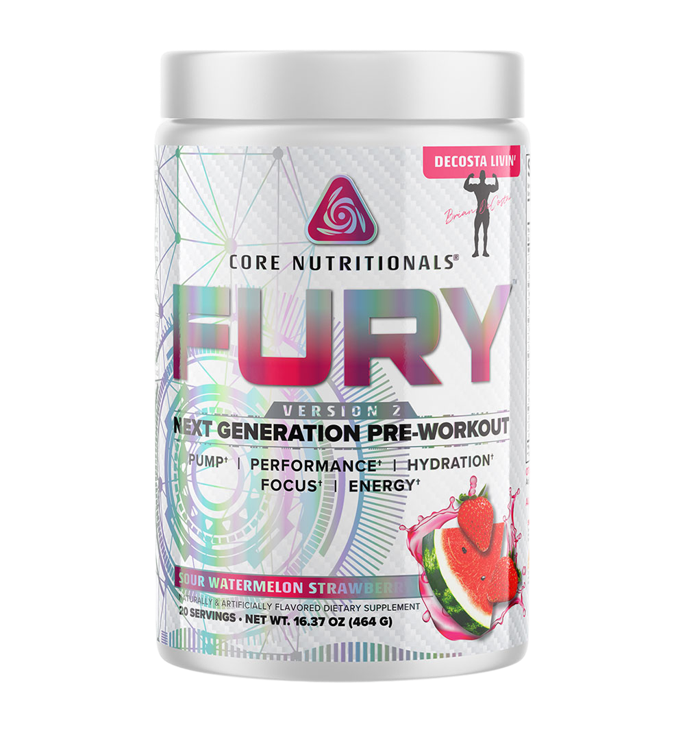 Core FURY Version 2 is a meticulously crafted combination of key ingredients created to boost athletic performance, hydration, mental clarity, and energy. For athletic performance, muscle pumps, and athletic performance, ingredients such as L-Citrulline, VasoDrive-AP®, Citrapeak®, and Senactiv™, among others, are included at or above serving sizes suggested by clinical research. These ingredients have repeatedly demonstrated improvements in blood flow, hydration, power output, VO2 max, and time to exhaustion. For cognitive capacity, clarity, and focus; L-Tyrosine, Alpha GPC 50%, Cocoabuterol®, and Pregnenolone are also included at, or above, serving sizes suggested by research. Studies using these ingredients have shown to increase working memory, enhance focus, and reduce cognitive fatigue.