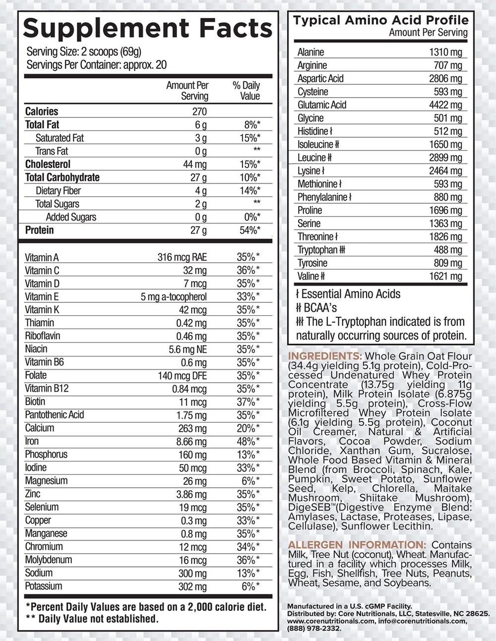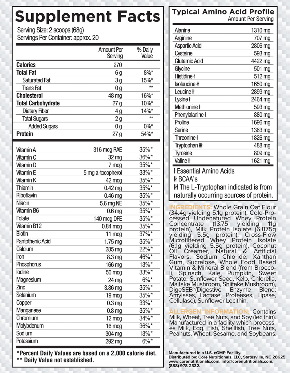 Core MRP is not like the rest. We are setting a new standard with the product that started it all. We have chosen only high-quality whole grain oat flour to include as your carbohydrate source. Oats offer a wide variety of benefits aside from just providing carbohydrates for the body. Some of these include: