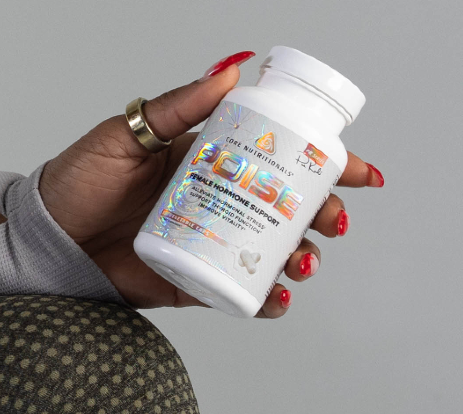 Core POISE is a unique and specifically formulated solution to this problem. Our tailored ingredient profile addresses the mechanisms associated with the body’s stress response. Key ingredients such as magnesium, DIM, Chaste berry, and pregnenolone, are all heavily involved in sex hormone biosynthesis and estrogen balance, and some have been demonstrated to mitigate some of the discomfort associated with PMS. Other ingredients, such as iodine, turmeric extract and Olea europaea help optimize your body’s response to stress, providing and supporting thyroid health. Stress impact on the thyroid can lead to a suppressed metabolism, which can lead to unwanted weight gain. So, while POISE will not make your life easier, it certainly makes responding to it easier.