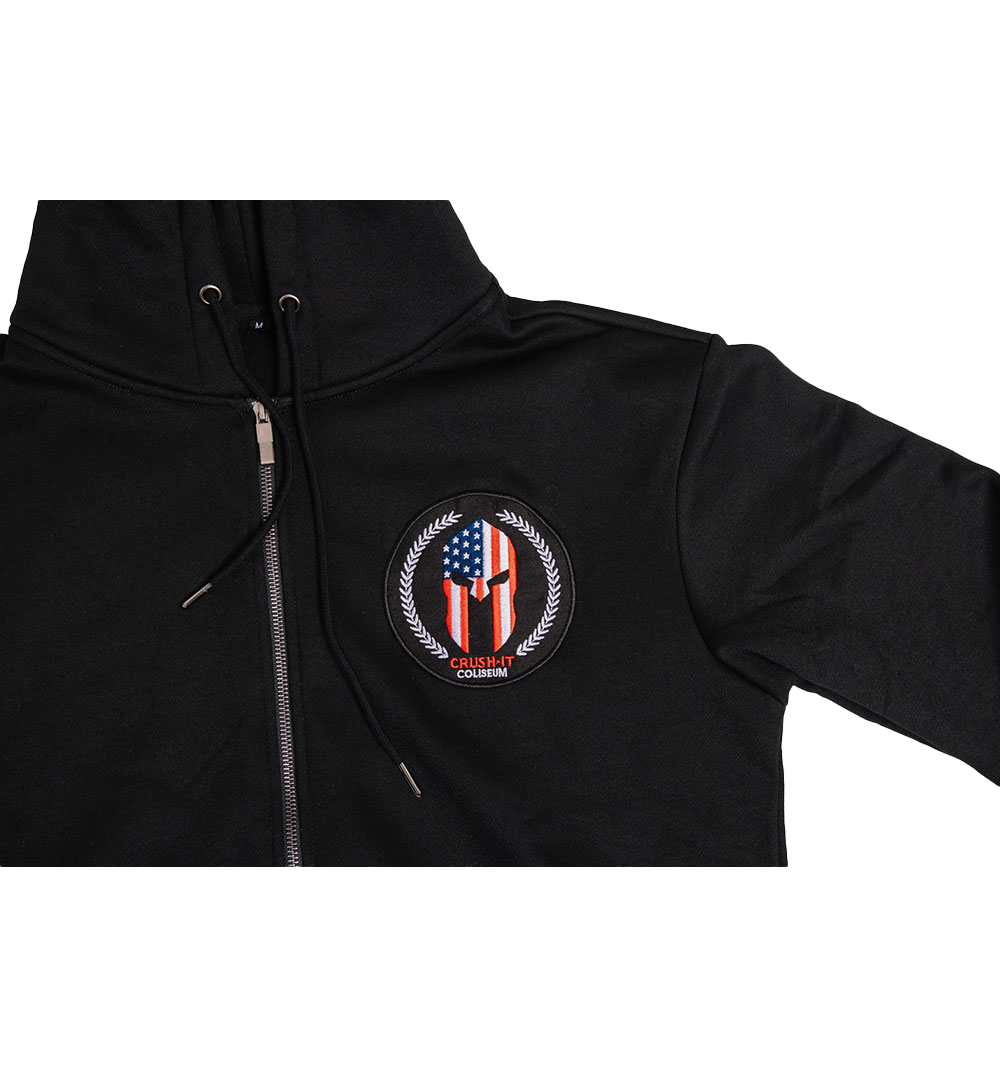• Premium Hoodie featuring the Crush It Coliseum Gladiator Mask logo patch on front chest and the iconic CRUSH IT (R) up the back