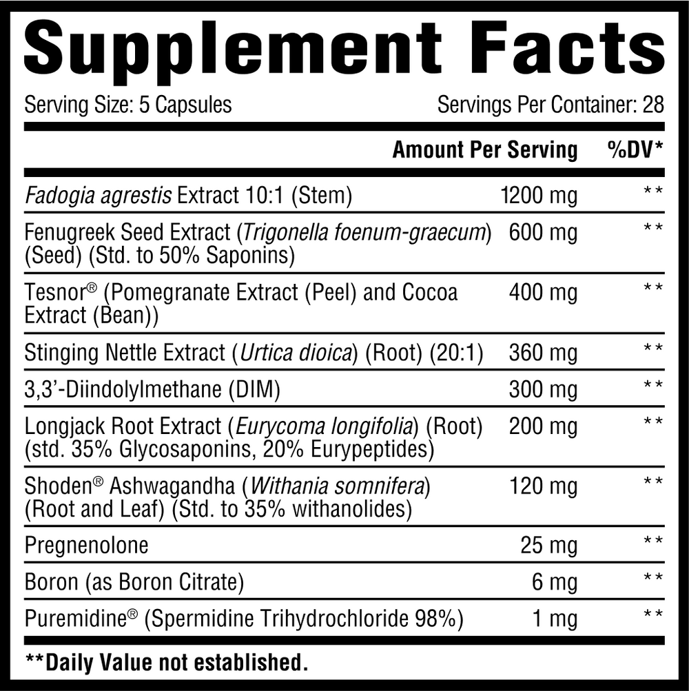 Fadogia agrestis, a shrub native to West Africa, has been used in traditional medicine for centuries to support male vitality and performance. Today, science is beginning to validate what has been long believed—that Fadogia may play a role in supporting healthy testosterone levels. Standardized in a potent 10:1 extract, the concentration of bioactive compounds in Fadogia agrestis is significantly enhanced, making it more effective at delivering results in an efficient dose